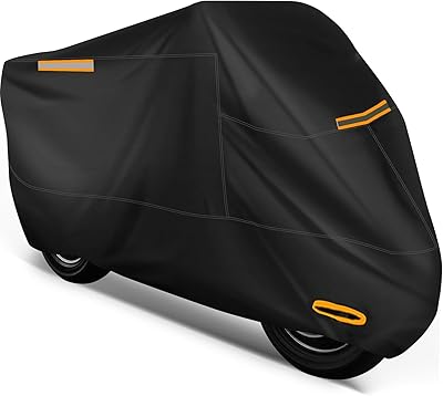 Motorcycle Cover Waterproof Outdoor, 300D Heavy Duty Motorcycle Cover for Harley Davidson Sportster 1200 883 Fat Boy 114 Street Bob, All Seasons Protection Scooter Cover Fits up to 96"